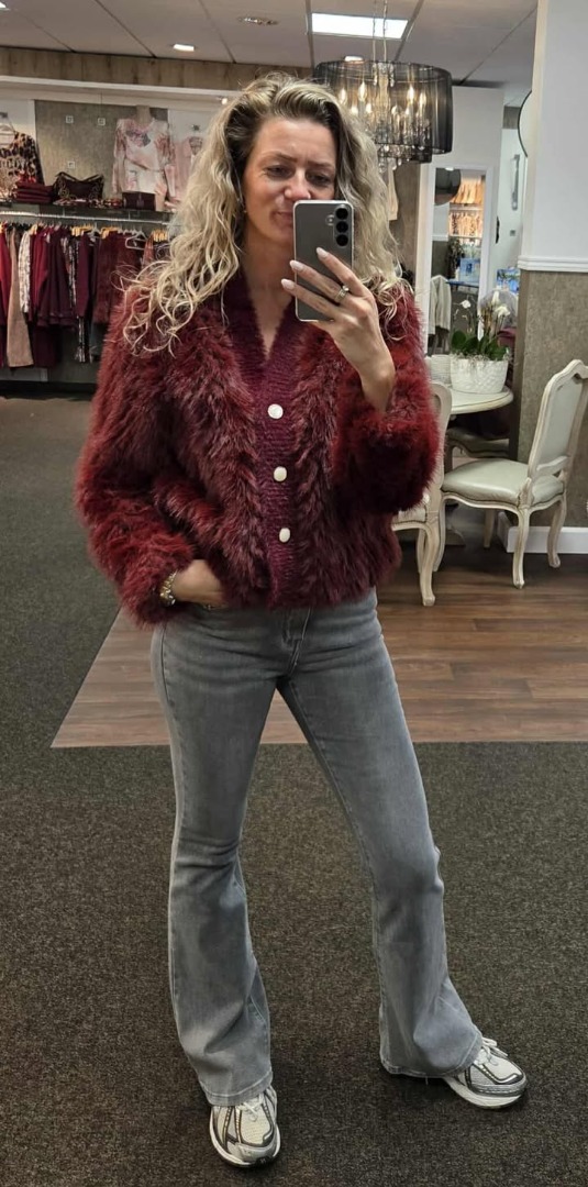 Faux fur vest/jas bordeaux