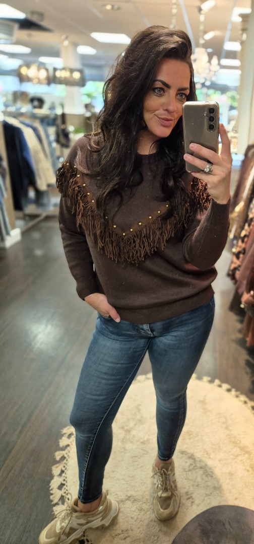 Trui franjes bruin