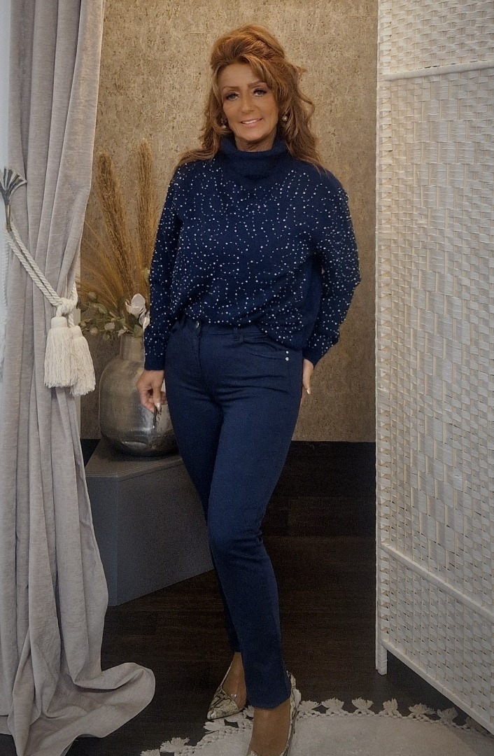 Trui Blauw Pearls deze zitten door en door dus gaan niet los .